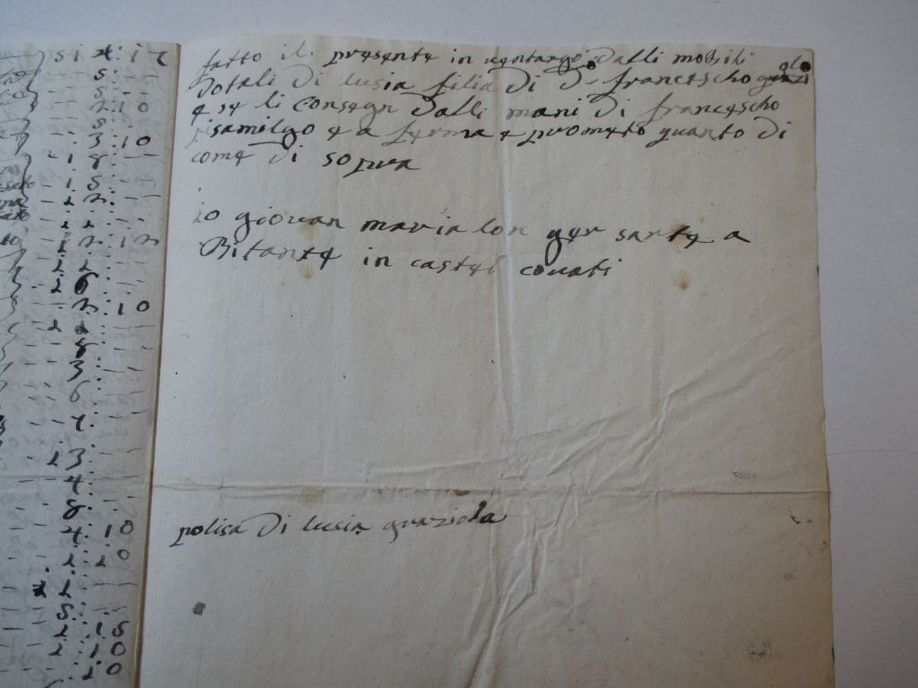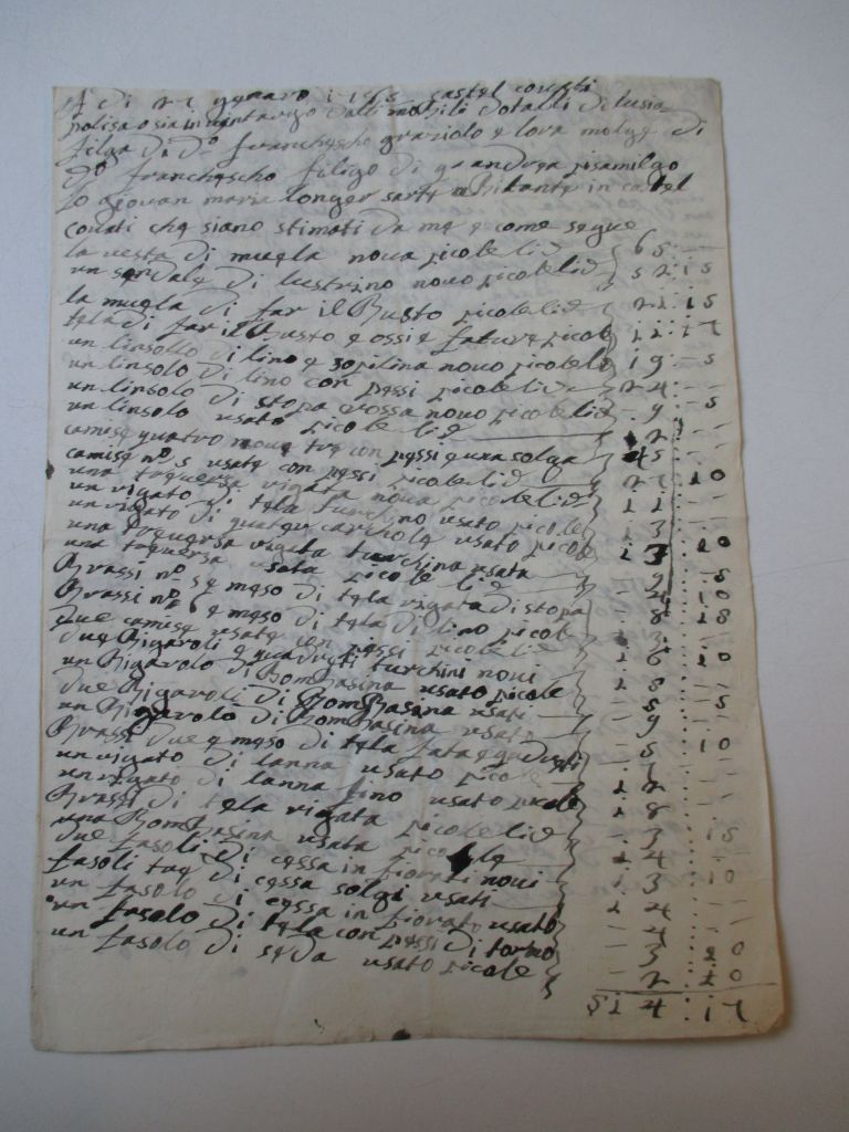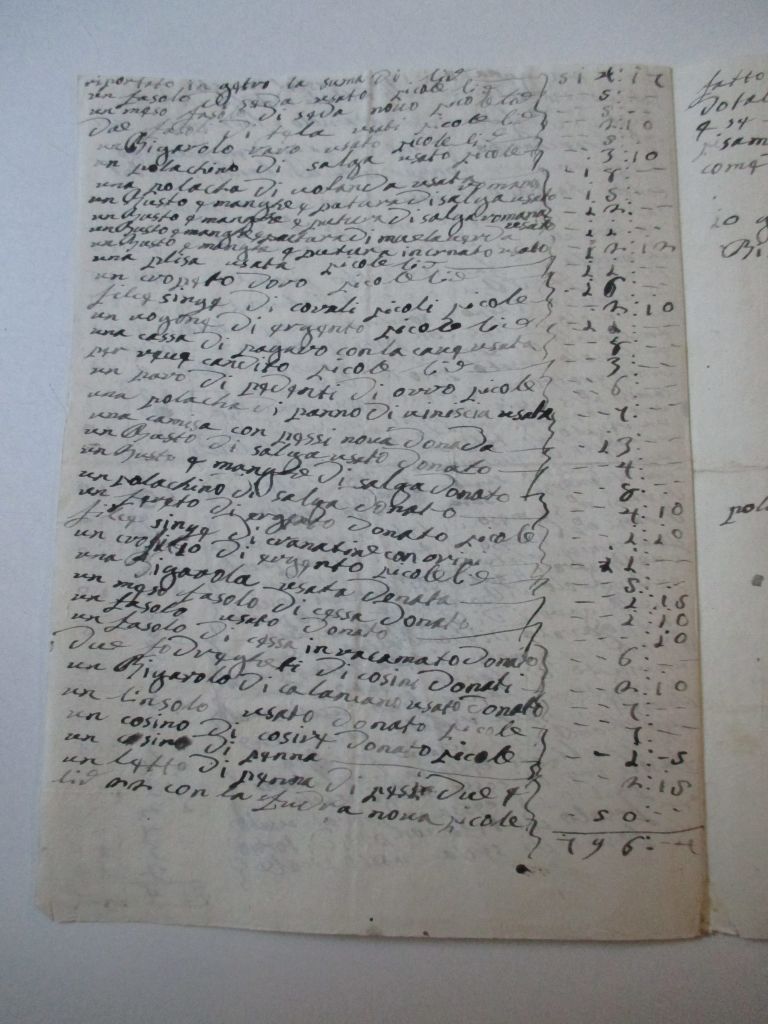 - Dote matrimoniale di Lucia Grazioli redatta dal sarto Gio Maria Longer